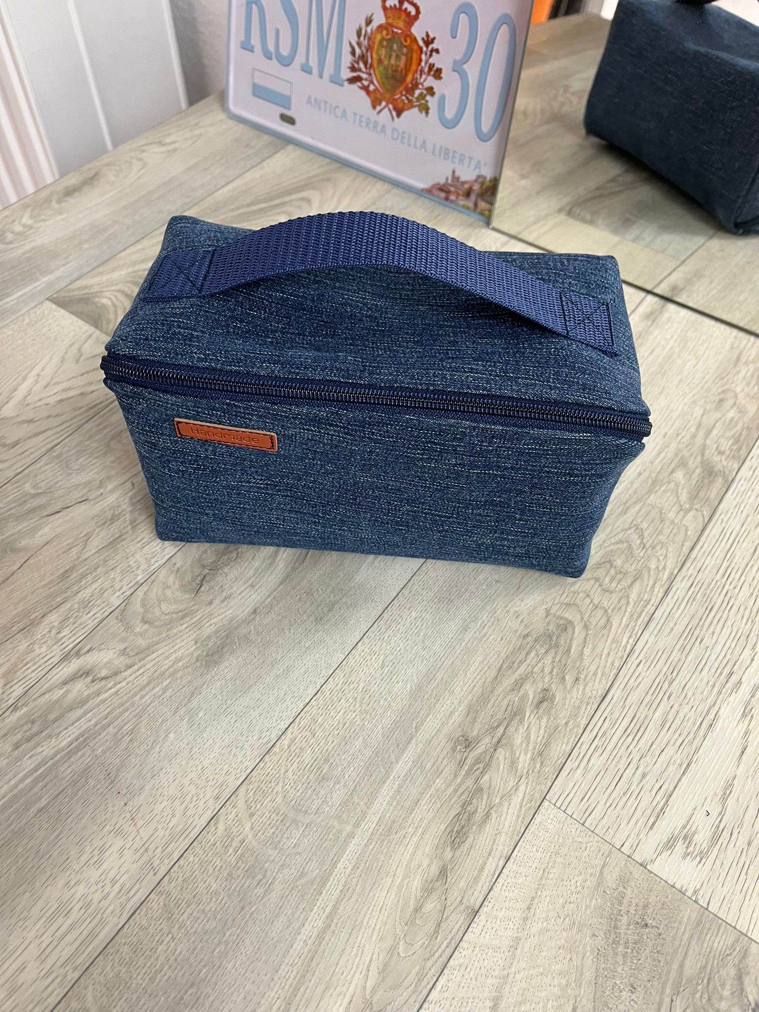Kulturbeutel „Jeans-Look“ – Handgefertigtes Raumwunder in Dunkelblau